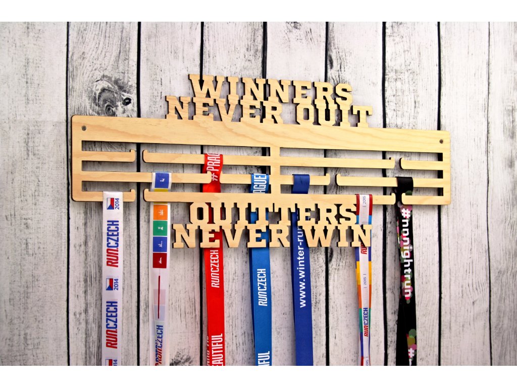Držák na medaile Winners never quit