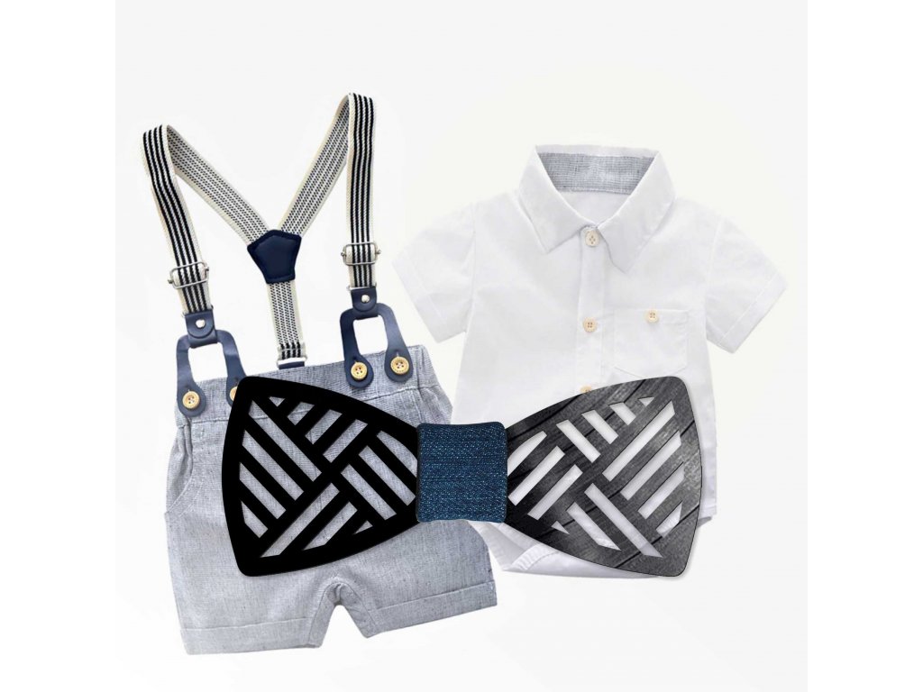 Dětský motýlek z gramodesky má rozměr 70x30mm a je osazen pruženkovou gumou s možností měnit délku podle velikosti obvodu krku.