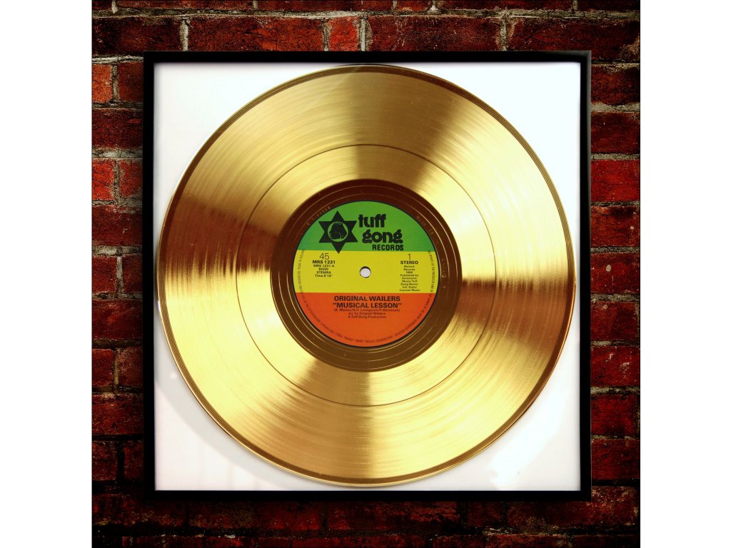 Díky vícestupňovému procesu galvanického pokovování má naše gramodeska stejný vzhled jako skutečné rekordní ocenění – známé jako platinová gramodeska.