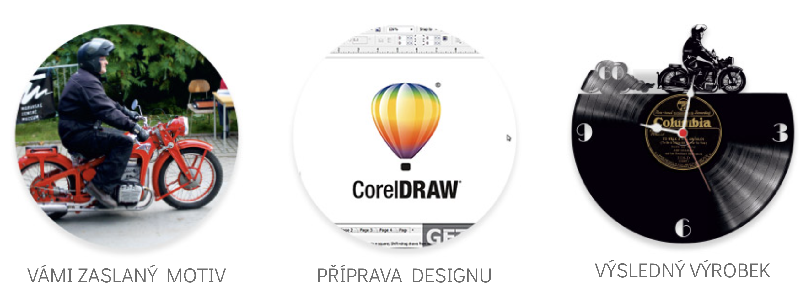 Vyrábíme vinylové hodiny jako dárky na zakázku. Chceme, aby naše hodiny byly součástí Vašeho domova a nabízíme našim zákazníkům možnost do hodin promítnout kus sebe.